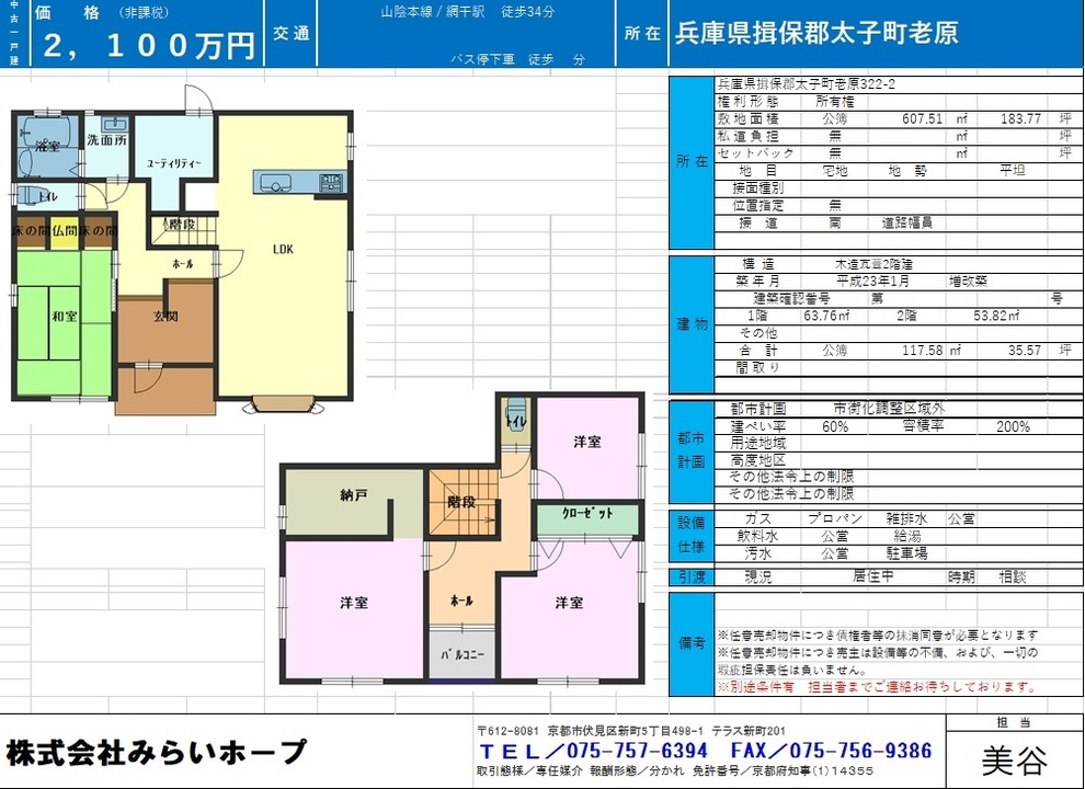 物件情報 兵庫県揖保郡太子町老原 公開しました。